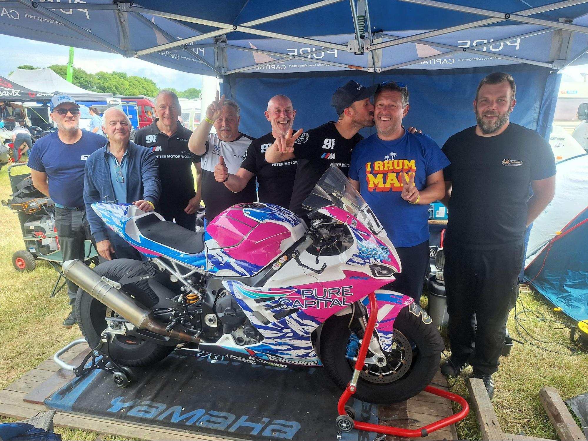 We deden een kleine aanpassing aan de voorvering van de S1000rr en monteerden een nieuwe band. De start was even braaf, maar het tempo lag een stuk hoger. Ik kon strakke en lage rondetijden rijden. Peeters was te snel. De rest kon niet meer volgen. Tien seconden voorsprong op P3 op een BMW waar ik nog nooit op reed. Het weekend afsluiten met 2 maal P2 zonder eigen motor had niemand kunnen denken. Een grote dank u wel aan iedereen die zich ingezet heeft om me te helpen deze resultaten te bekomen. En GRAND MERCI aan Patrick voor het lenen van zijn motor.